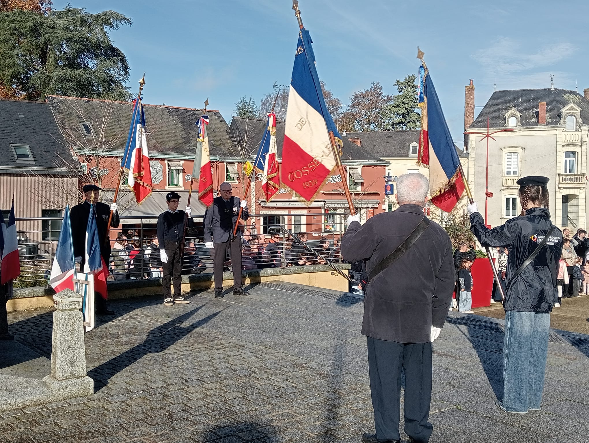 Le 11 novembre dernier, le Collège Saint Joseph de Cossé-le-Vivien a pris part à la cérémonie de commémoration de l’Armistice. Notre établissement était représenté avec fierté par Colomban, porte-drapeau officiel du collège, qui portait pour la seconde année consécutive le drapeau confié par l’association Le Souvenir Français.