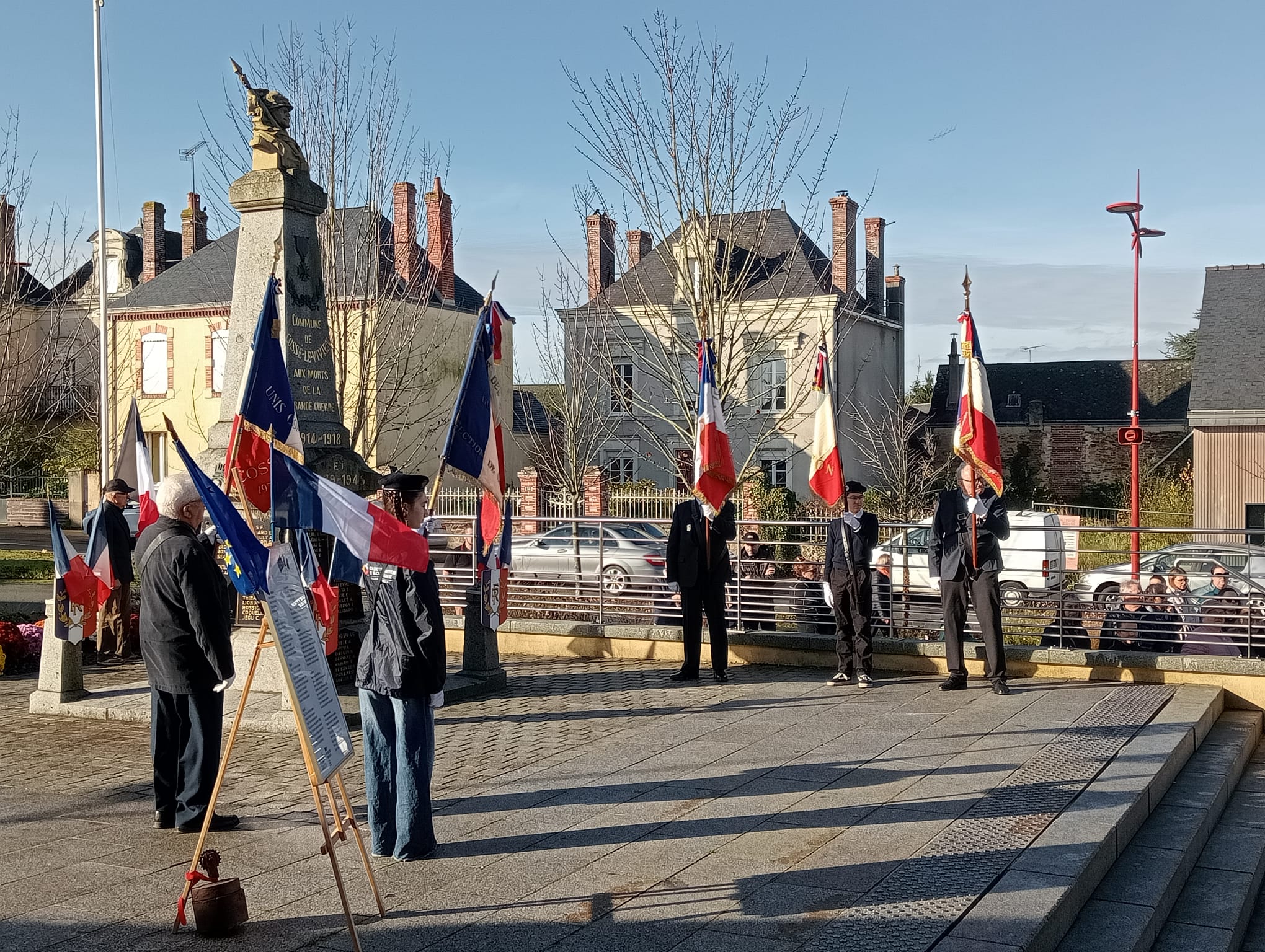 Aux côtés des porte-drapeaux des anciens combattants, Colomban était accompagné de M. Bouhallier. Tous deux ont assisté à une cérémonie empreinte de respect et de solennité, animée par M. Buchot et M. Langouet, maire de la commune.