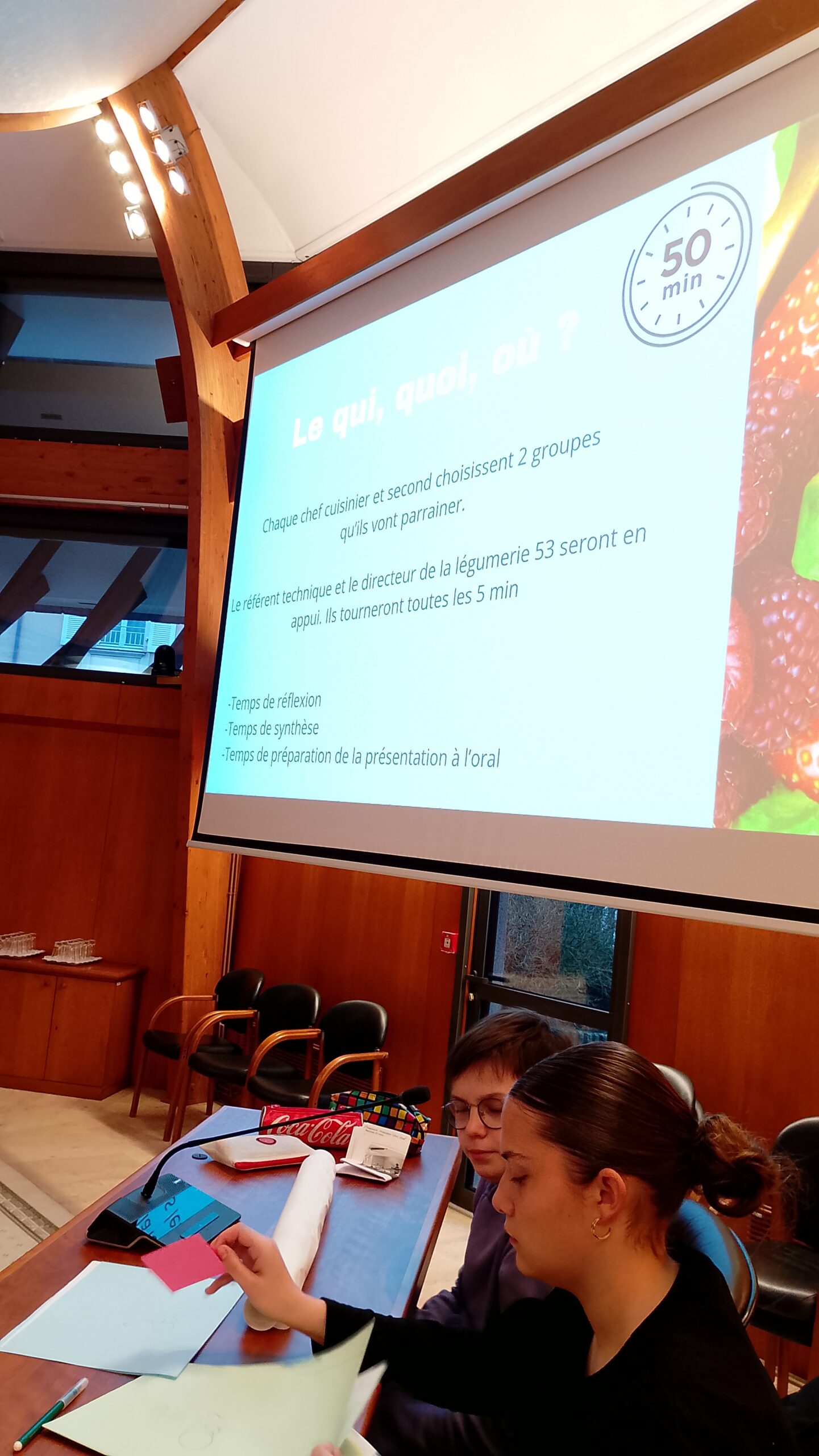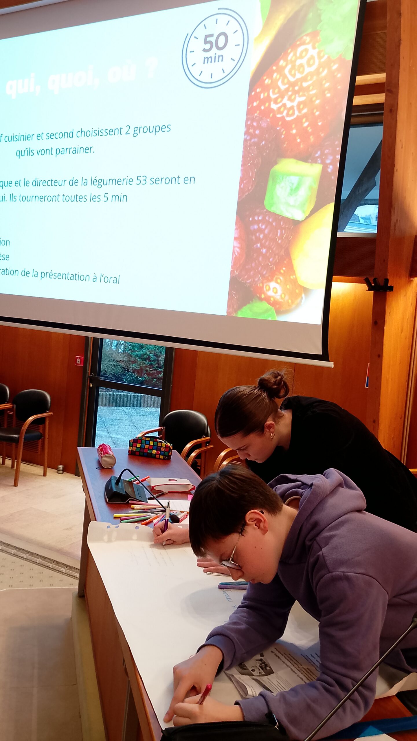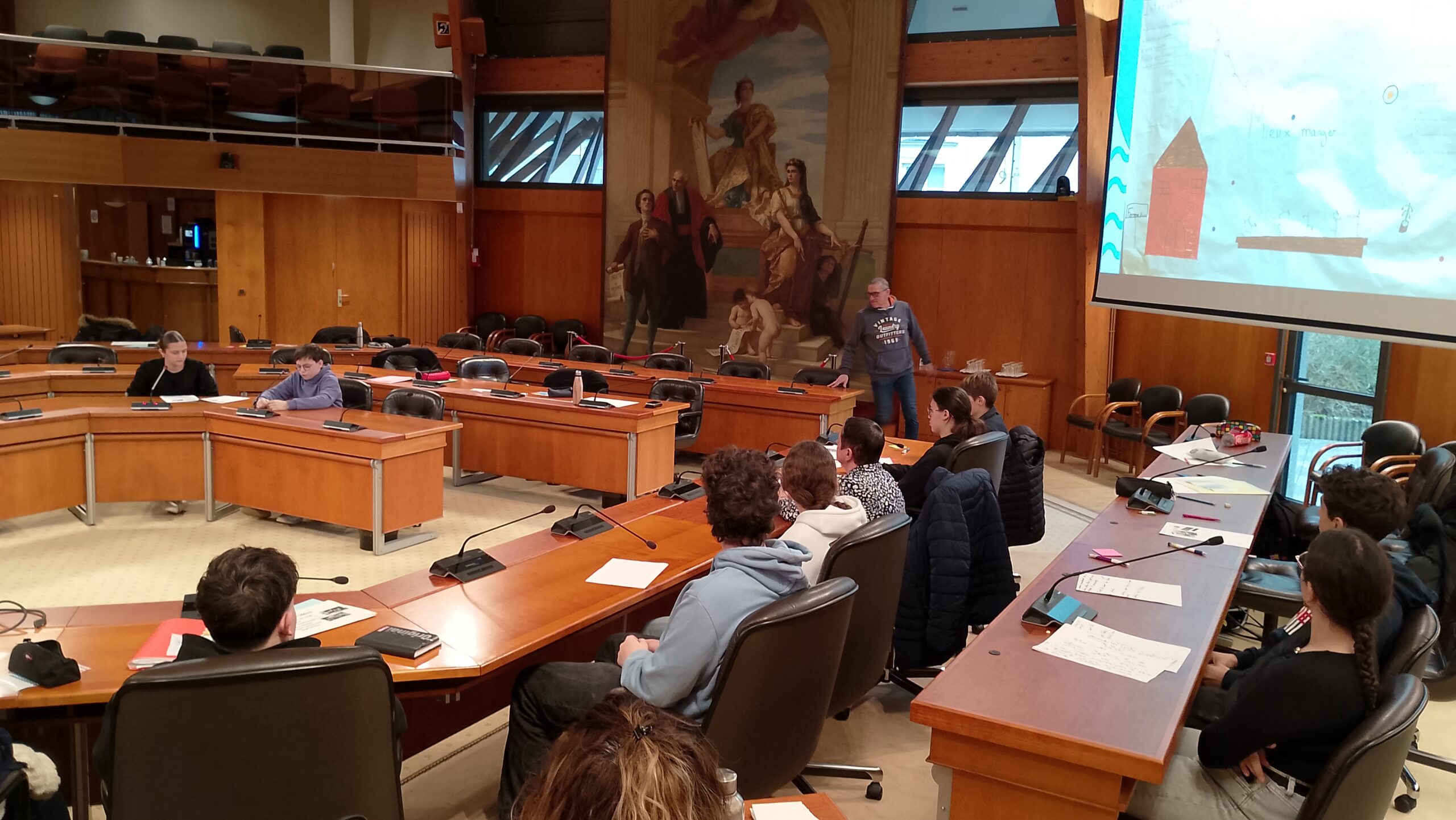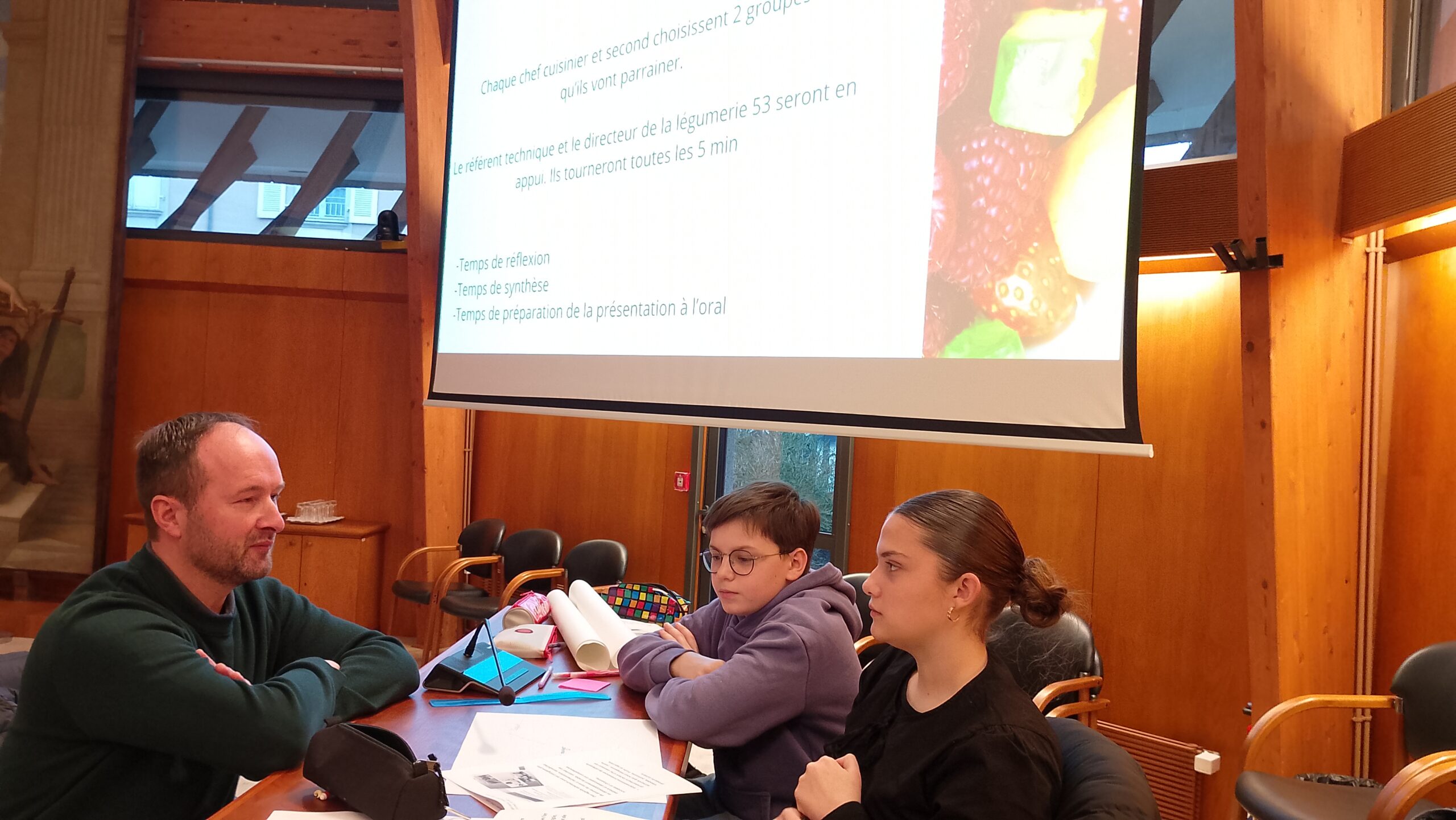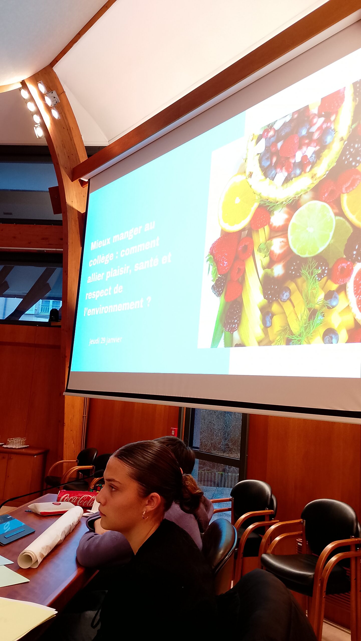 Malgré une préparation de meilleure qualité que les collègues concurrents (8 collèges présents sur cette deuxième matinée), ce n’est pas le projet de Kélya et Valentin qui a été retenue par les autres délégués mais celui du collège de Bais avec « les repas à thème ».