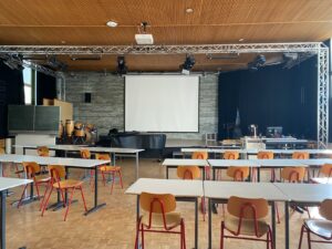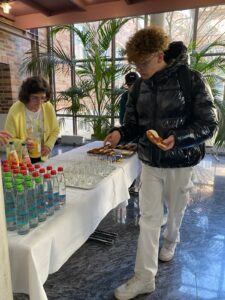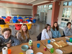 Nous avons tout d’abord pris un petit déjeuner tous ensemble puis, après un mot d’accueil du directeur, nos élèves ont pu visiter le Gymnasium.