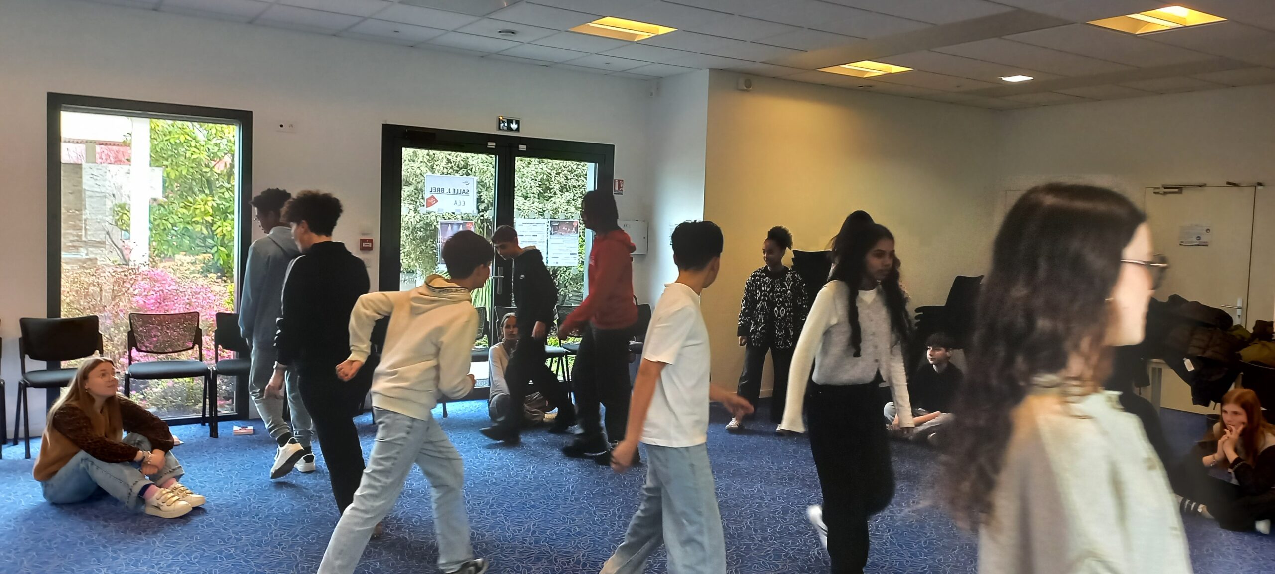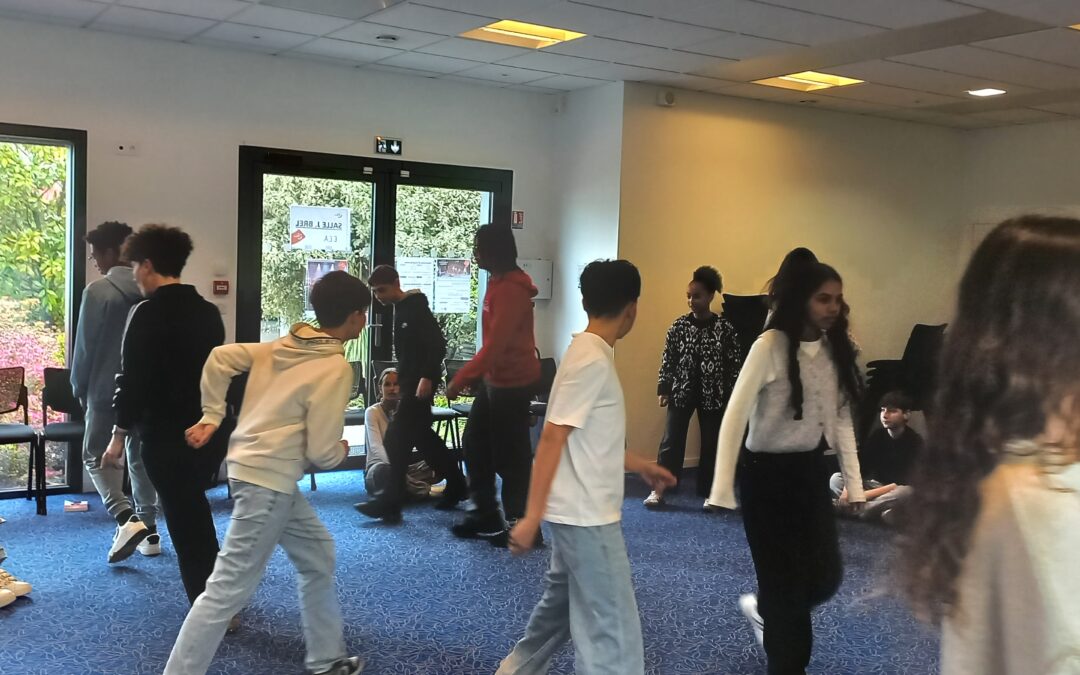 Mardi 31 mars, les élèves de 4ᵉ C ont vécu une journée entièrement dédiée à la pratique théâtrale. Encadrés par Sandrine MONCEAU, comédienne de la compagnie T’Atrium, et Timothée GIGAN SANCHEZ, enseignant de l’école de musique de Cossé-le-Vivien, ils ont revisité plusieurs passages clés de Cyrano de Bergerac, déjà étudiés en cours de français.
