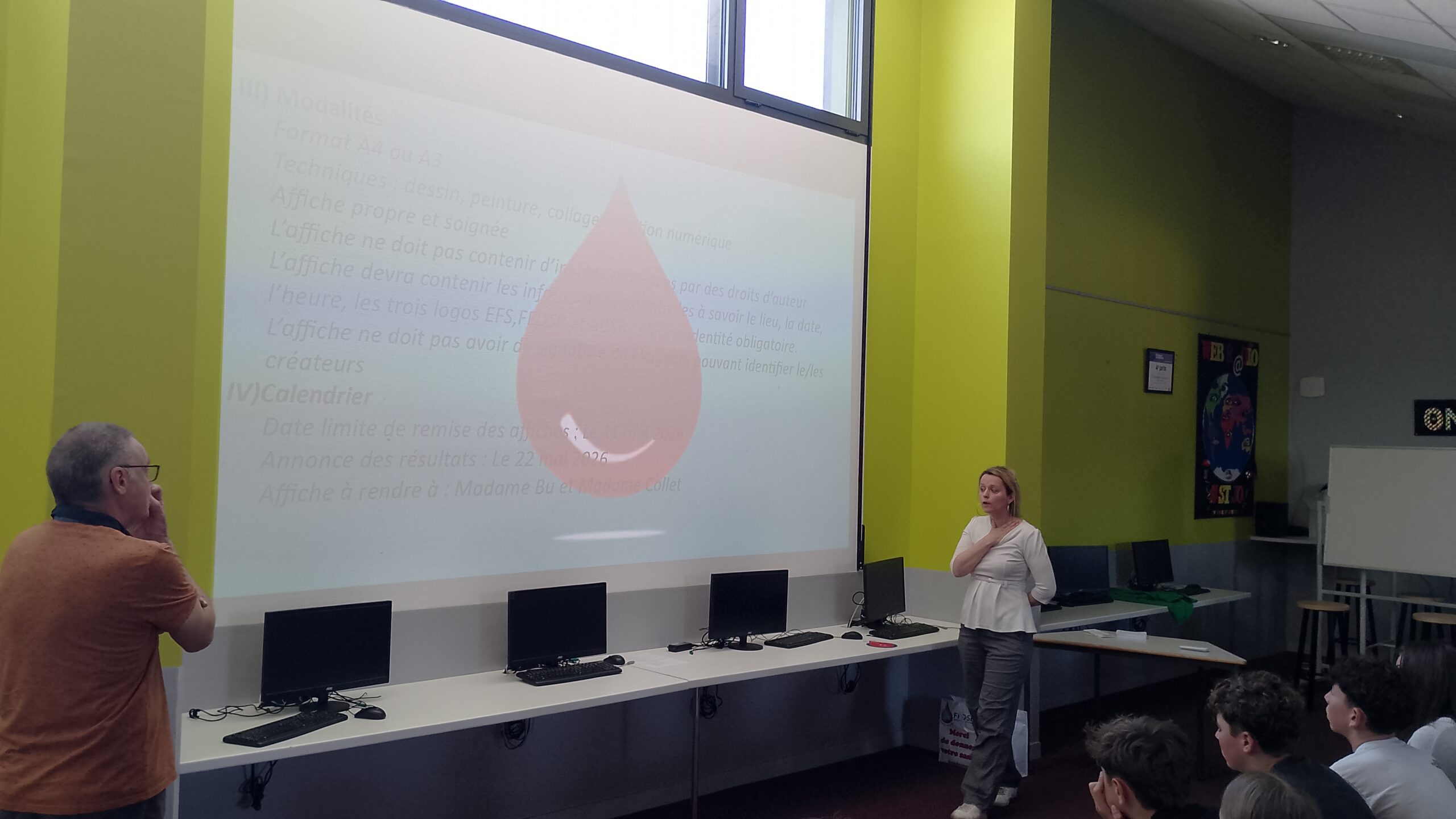 Les bénévoles ont également proposé aux élèves volontaires de créer une affiche qui servira de communication pour la collecte du mois de juin.