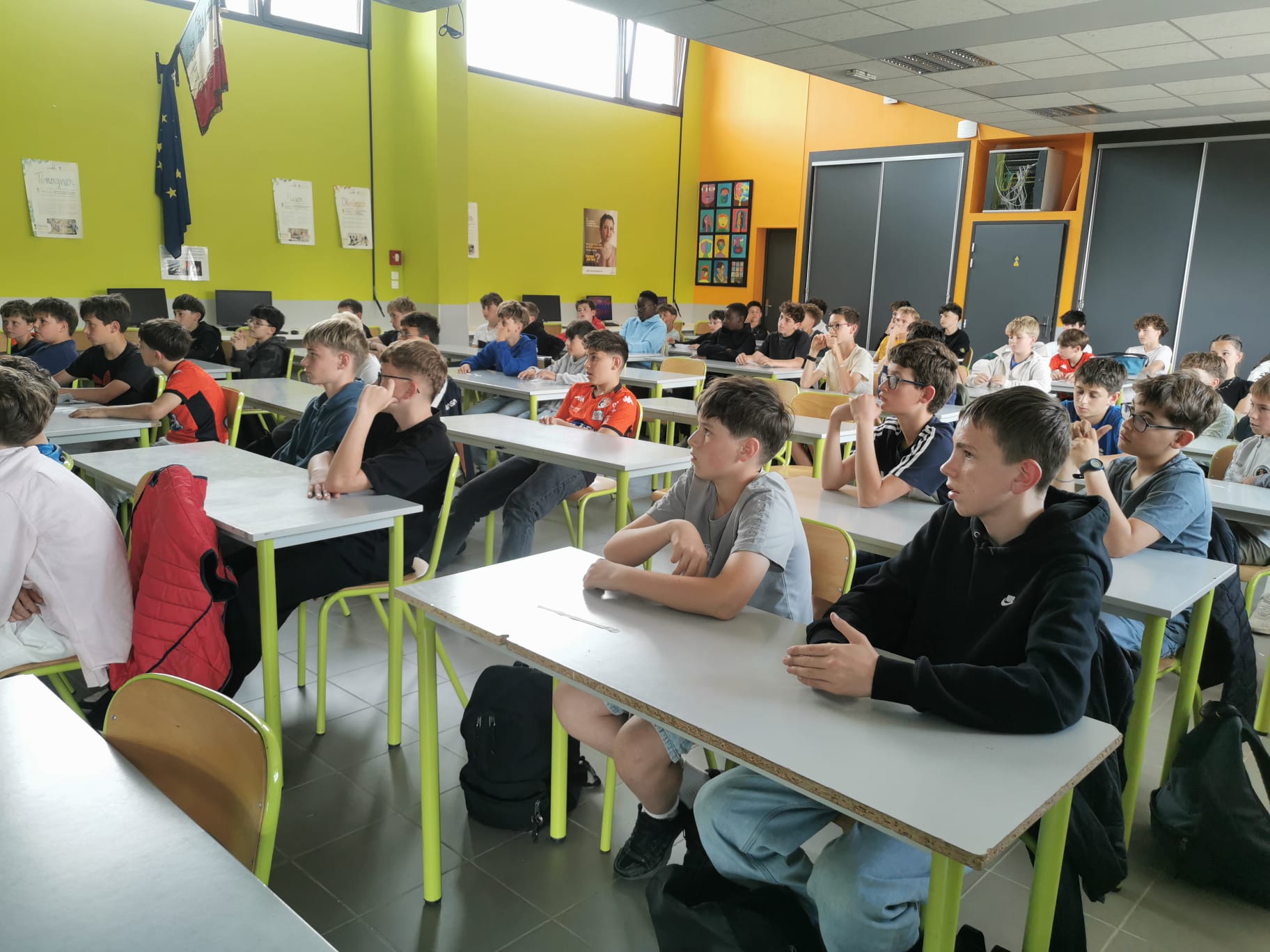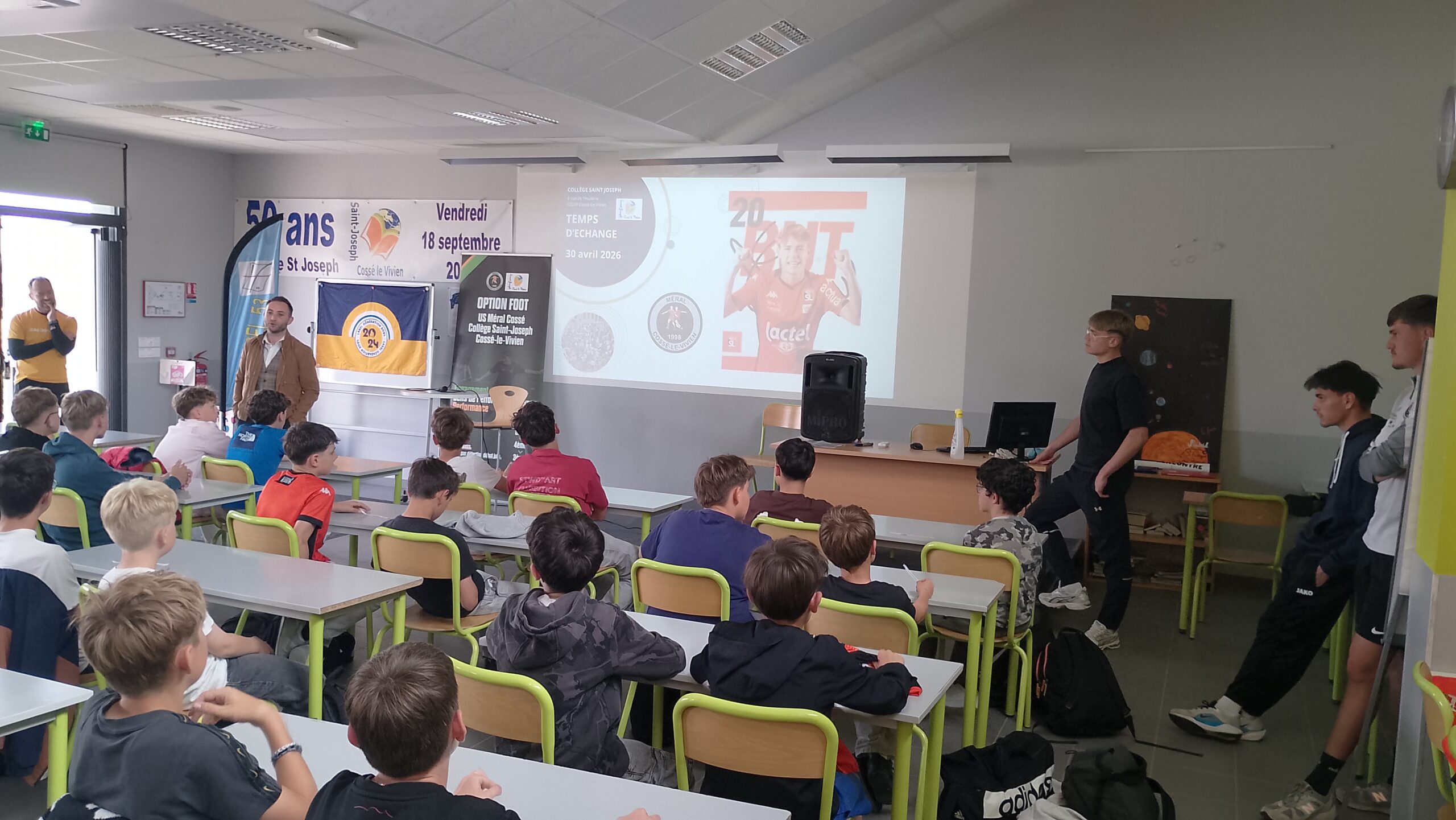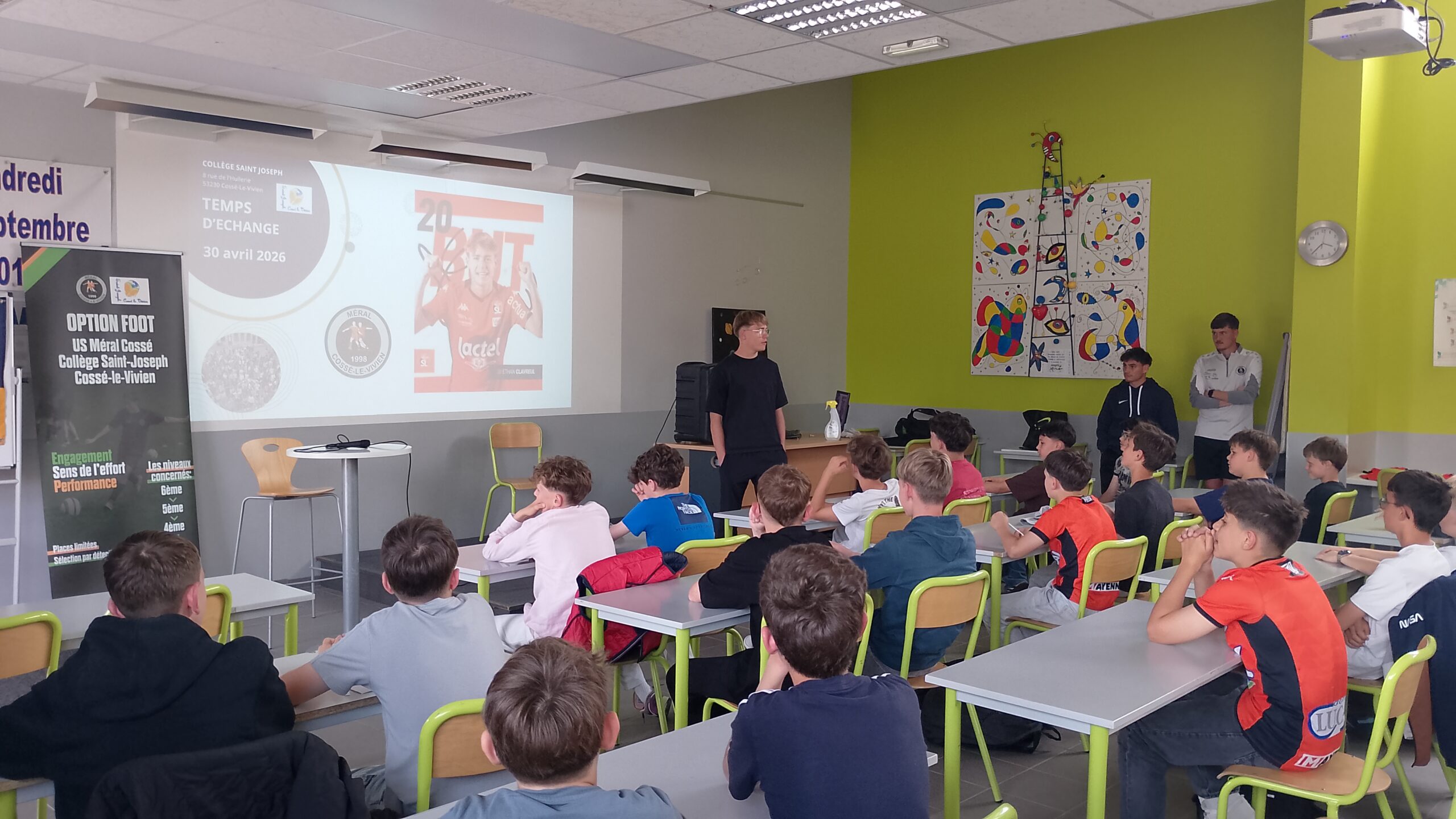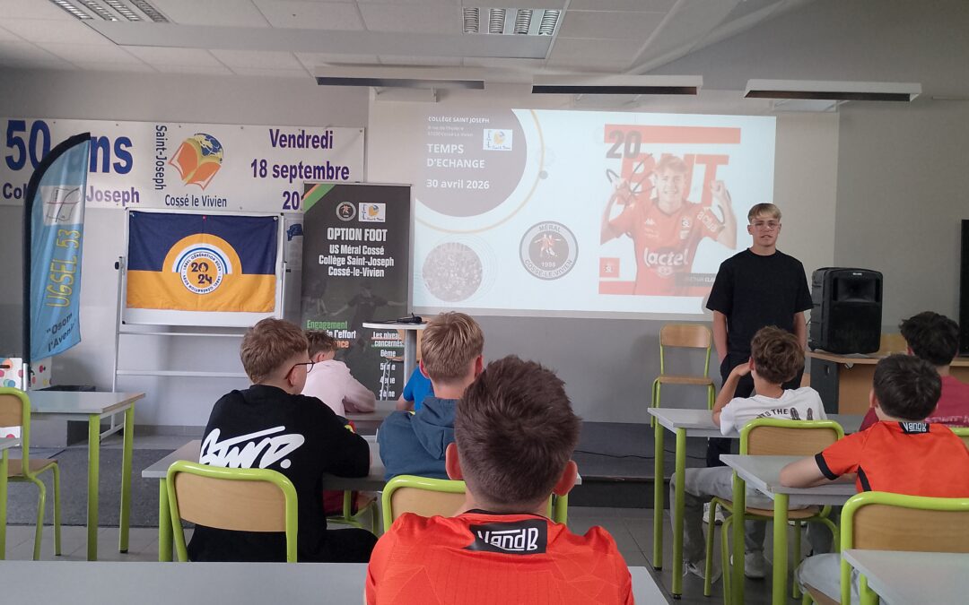 Ce jeudi 30 avril, accompagnés des éducateurs de l’USMC et de M. Marc, responsable de l’option football, nos élèves ont vécu une rencontre inspirante avec Ethan Clavreul, joueur professionnel au Stade Lavallois… et ancien élève du collège.