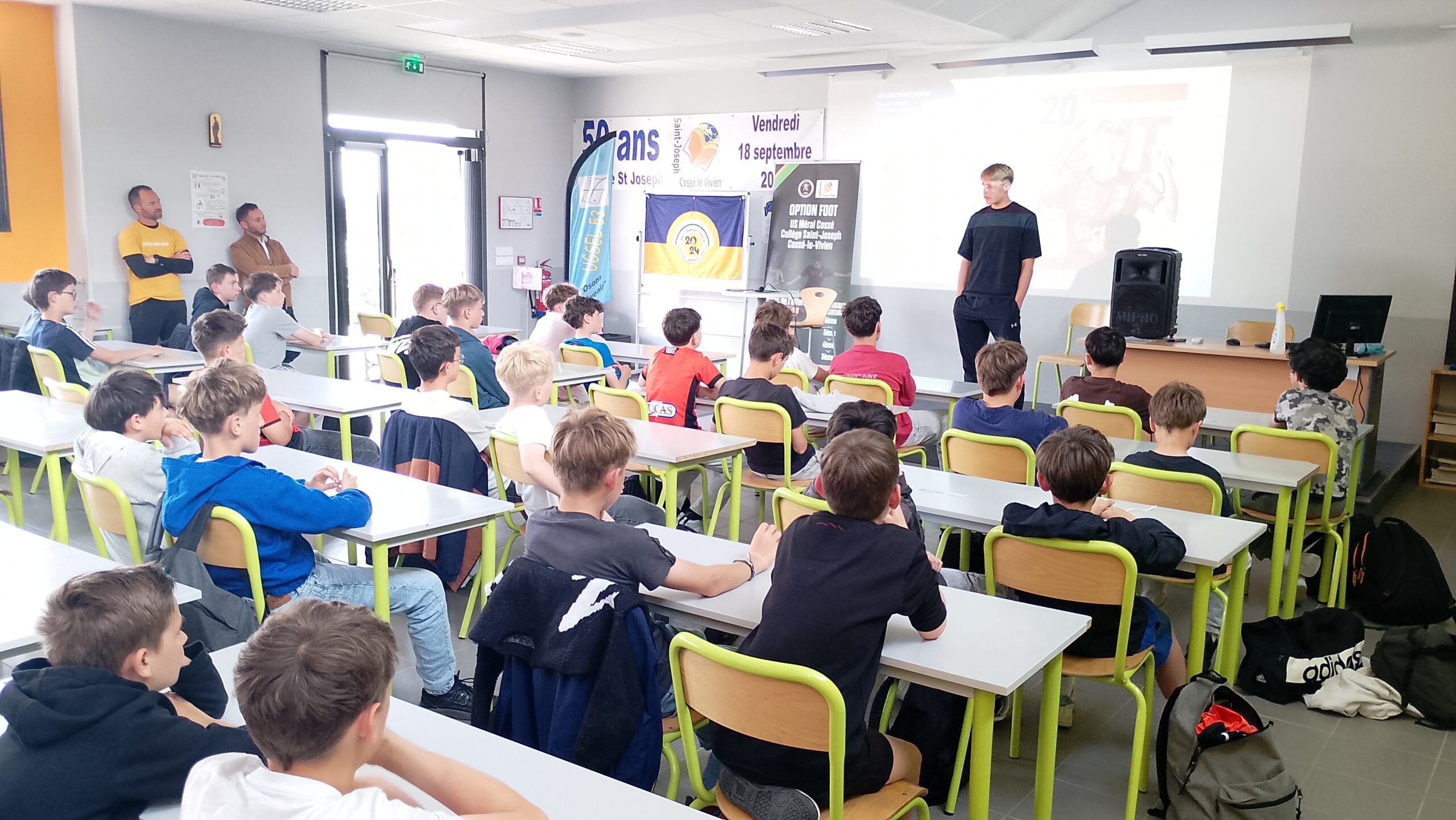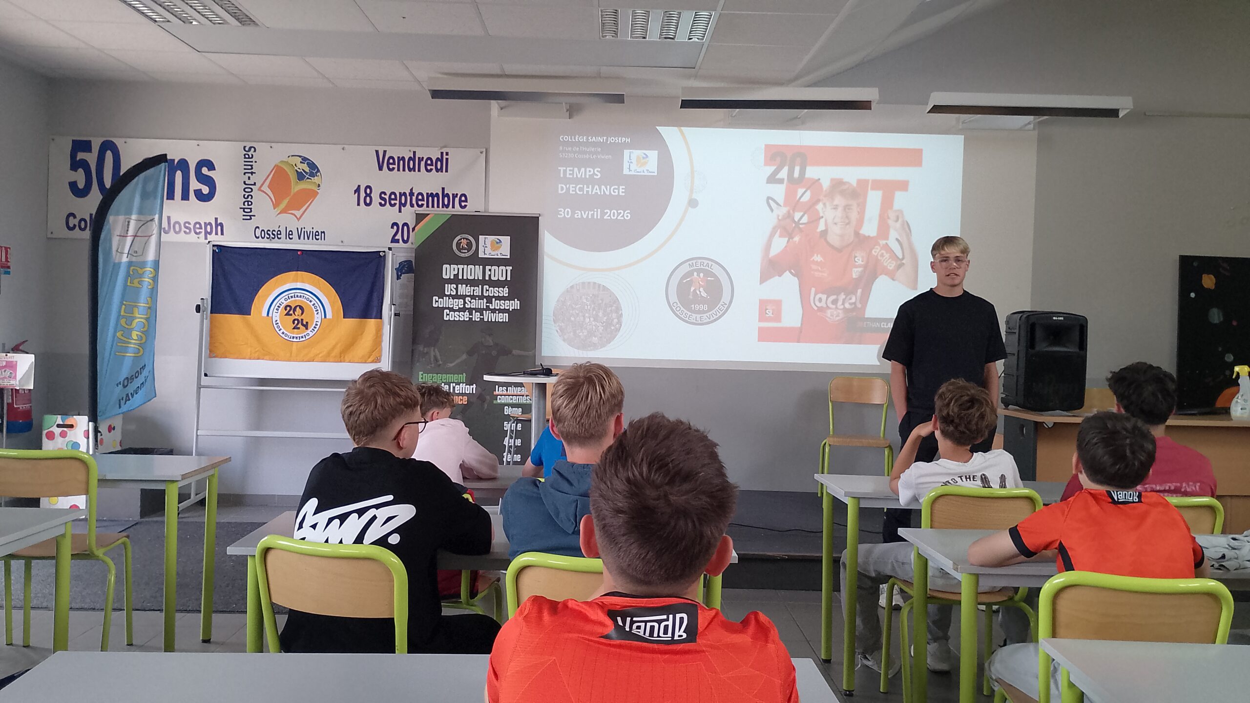 De ses débuts à Courbeveille à son parcours au Stade Lavallois, Ethan a partagé son histoire avec sincérité. Il est revenu sur les étapes clés de sa formation, mais aussi sur des années collège parfois compliquées. Un message fort retenu par tous : avec du travail, de la persévérance et des sacrifices, les rêves peuvent devenir réalité.